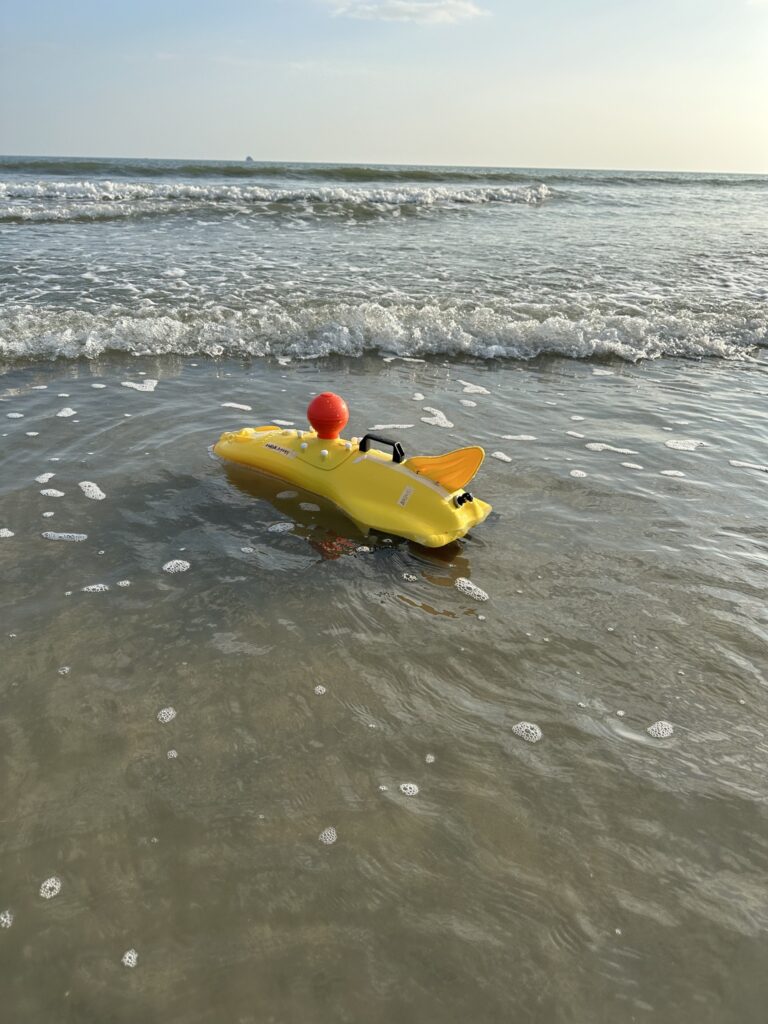 Grâce à sa conception (tumbler design), ce bateau revient toujours à sa position correcte, même dans de fortes vagues.