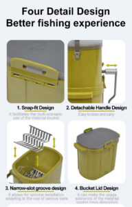 Le broyeur est livré avec une pelle à appâts et un couvercle supplémentaire pour fermer le récipient de récupération.