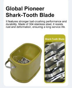 Les lames tournent sur deux roulements à billes dans un panier en acier inoxydable. Ce panier possède des ouvertures larges et étroites, permettant d’obtenir un mélange optimal de particules fines et grossières. De nombreux carpistes réputés confirment son efficacité redoutable pour la pêche à la carpe.
