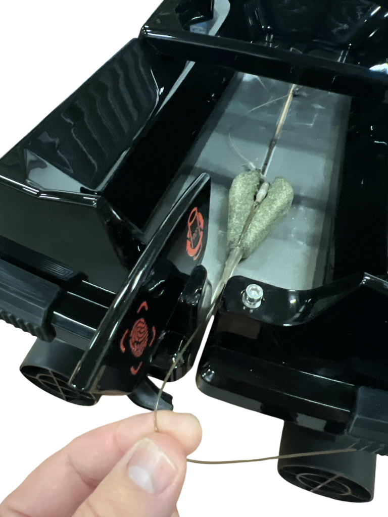 À l’arrière, un volet pivotant permet de placer facilement la ligne de pêche, sans passer par le fond.